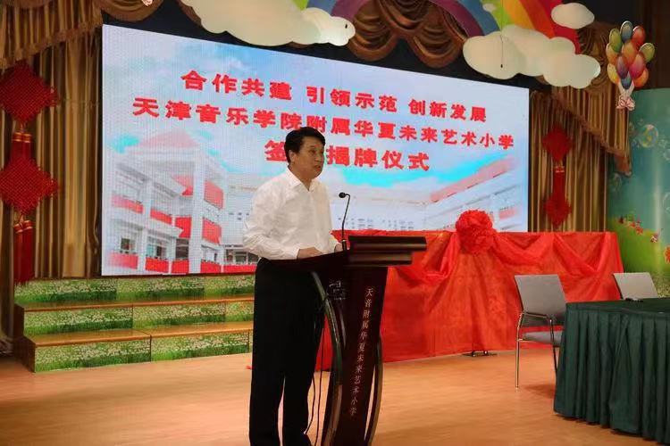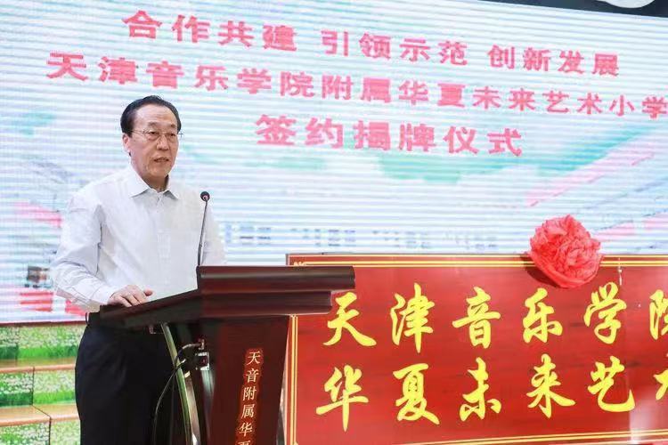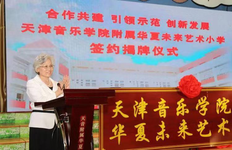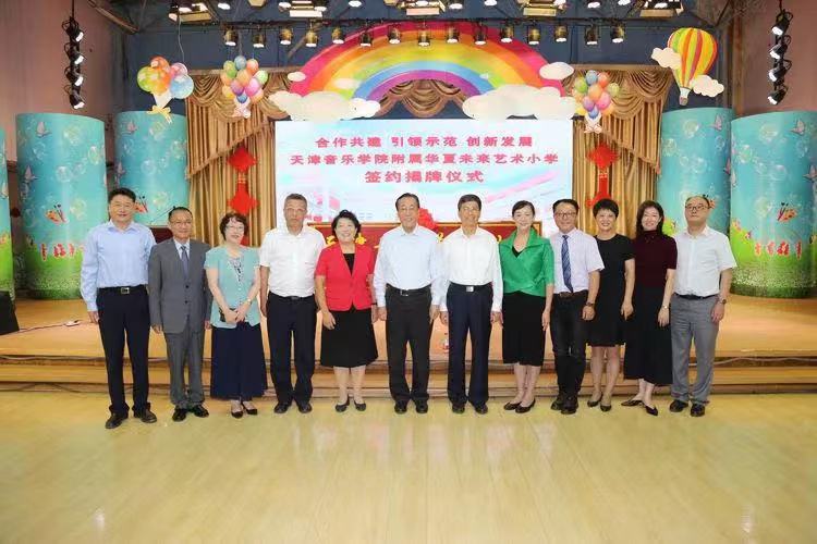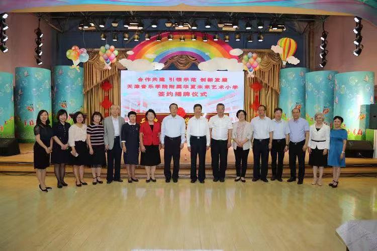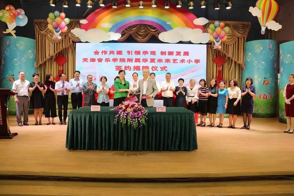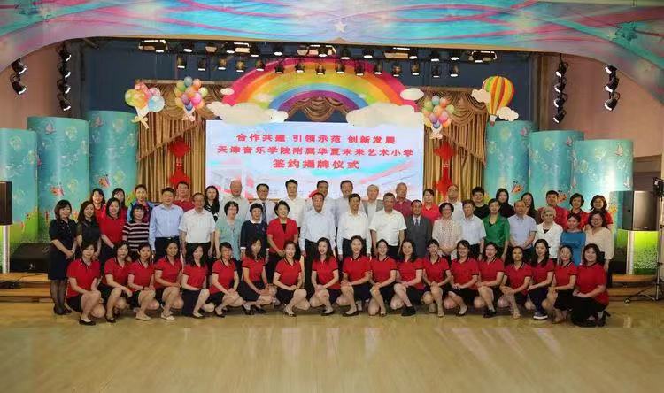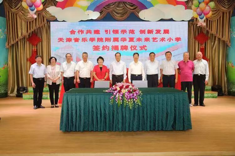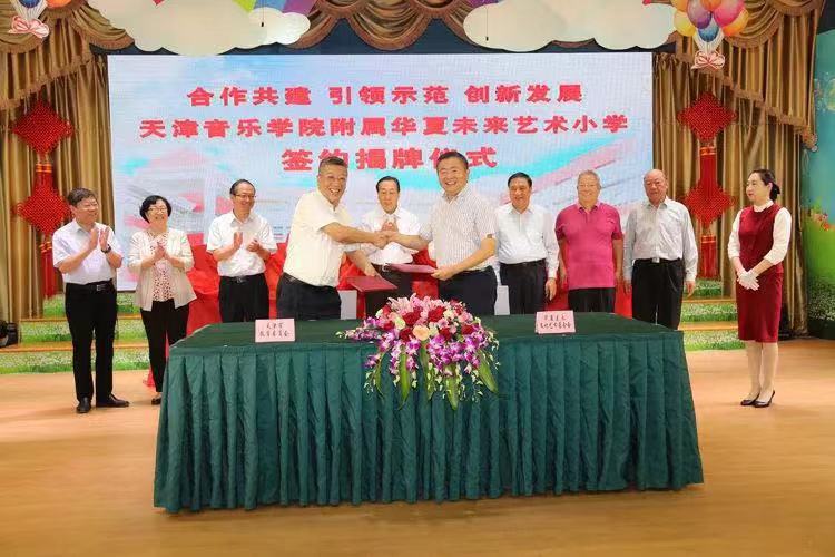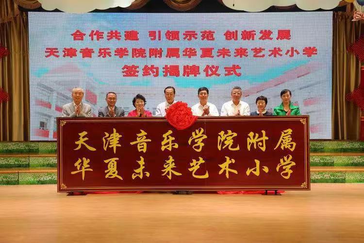 9月22日上午,天津音樂學院、天津音樂學院附屬中等音樂學校與天津華夏未來藝術小學合作共建天津音樂學院附屬華夏未來藝術小學簽約揭牌儀式,在原華夏未來藝術小學隆重舉行。