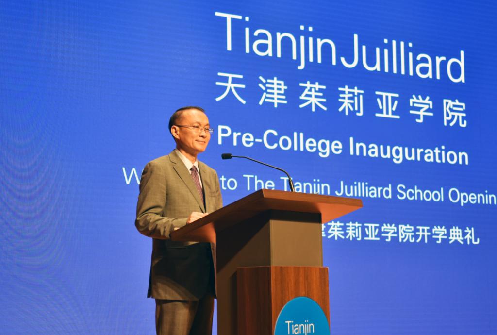 天津茱莉亞學院院長、天津音樂學院院長徐昌俊首先致辭,熱烈歡迎各位嘉賓,感謝長期以來政府的大力支持、社會各界的高度關注和茱莉亞團隊的精誠合作。他說,自2011年起,天津音樂學院和美國茱莉亞學院開啟了“天津茱莉亞學院”和“天津音樂學院茱莉亞研究院”的辦學項目,經過八年多努力取得了階段性成果。今后將繼續秉持“交融互鑒、創新發展”的辦學理念,為音樂教育事業的發展和繁榮作出貢獻,這也是天津茱莉亞學院和天津音樂學院共同的責任和使命。
