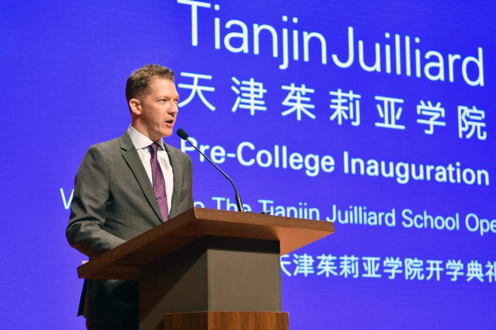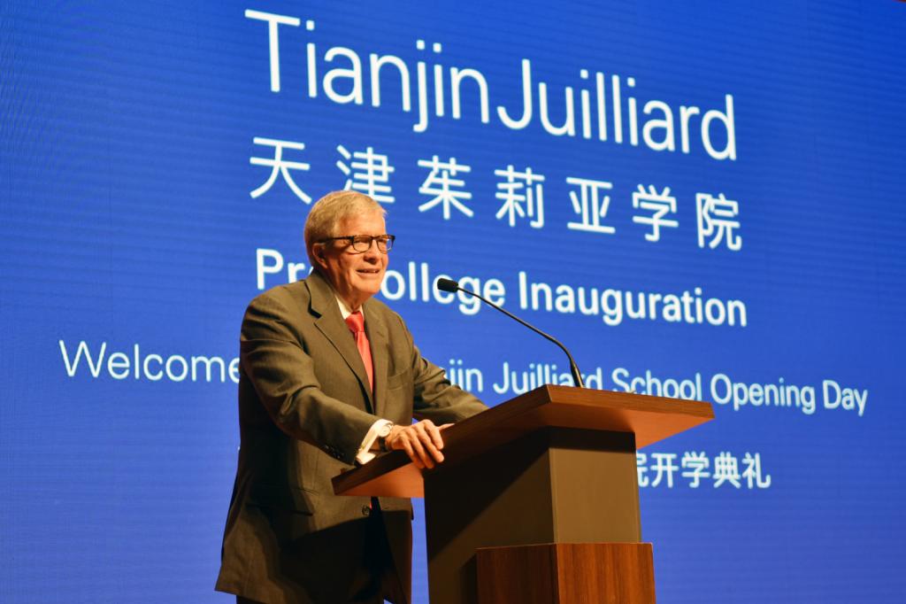 美國茱莉亞學院榮譽院長、天津茱莉亞學院理事長約瑟夫·波利希致辭,祝賀首屆天津茱莉亞學院預科開學典禮盛大舉行,熱烈歡迎杰出的天津茱莉亞學院教師團隊入駐天津,真誠感謝中方合作伙伴八年多來的大力支持。他表示,天津茱莉亞學院要將原汁原味的“茱莉亞體驗”帶給中國乃至亞洲的專業音樂學院和社會大眾,通過“天津茱莉亞樂團”將藝術家高水平的藝術表演呈現給觀眾,積極推動古典音樂在中國的蓬勃發展。