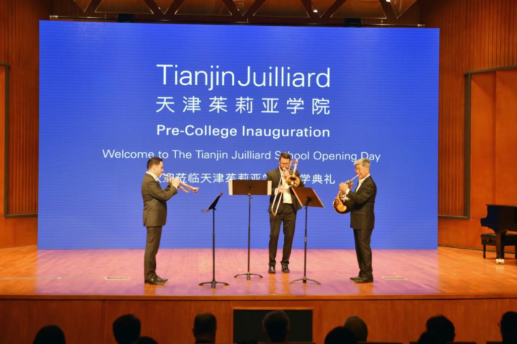 天津茱莉亞學院教師代表和學生代表演奏了勞倫·伯爾尼奧夫斯基《銅管三重奏》、謝爾蓋·普羅科菲耶夫《A小調第三鋼琴奏鳴曲》、尼科洛·安森《民歌序曲》等曲目,他們精湛的技藝、默契的合作,顯示出極高的藝術水準。