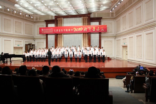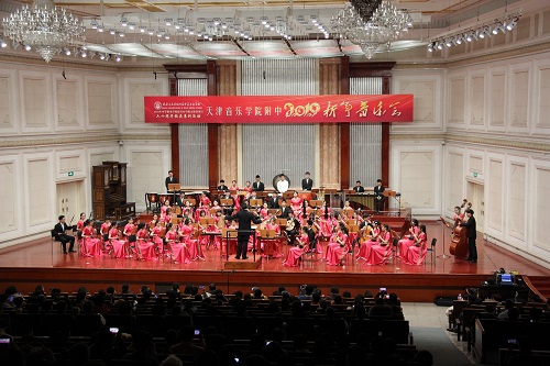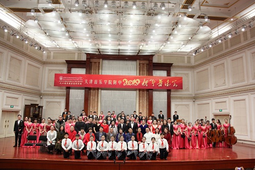 本站訊(編輯 王涵 責任編輯 孟輝 攝影 王涵)12月20日晚,天音附中2019年新年音樂會在天津音樂廳正式奏響。天津市教委中職處張峰處長,天津音樂學院黨委書記索玉華、院長徐昌俊、副院長靳學東,附中黨總支書記鄭悅文、校長孟輝、副校長張筱彤與廣大干部、師生和家長一同觀看了音樂會。