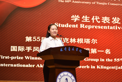 第55屆德國克林跟塔爾國際手風琴比賽演奏家組第一名、本科三年級學生韓依霖作為學生代表發言。
