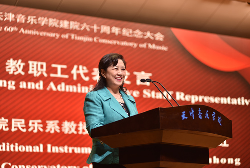 天津音樂學院民樂系教授謝玉虹作為在職教職工代表發言。