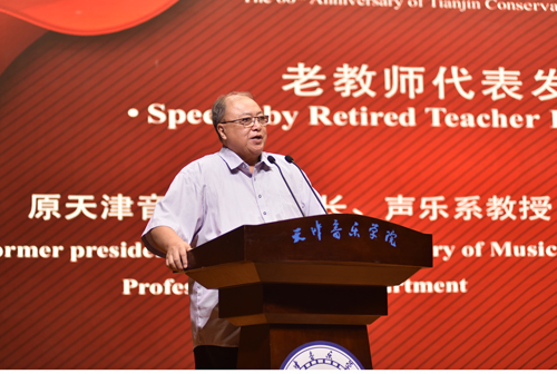 原天津音樂學院院長、聲樂系教授石惟正作為老教師代表致辭。