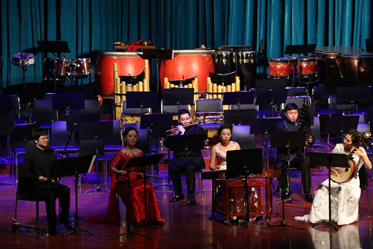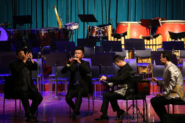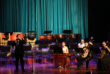 音樂(lè)會(huì)上半場(chǎng)是由我院優(yōu)秀青年教師演奏的六部作品,包括王展展的嗩吶獨(dú)奏《大笛絞》、王紅藝的柳琴獨(dú)奏《劍器》、張雅迪、申婷的琵琶與中阮二重奏《七個(gè)瞬間隨想曲》、蔣寧的笛子獨(dú)奏《胡璇舞》、楊紅、丁夢(mèng)迪、郭佳萱的古箏三重奏《炎》、凡音組合的民族器樂(lè)重奏《德音》。下半場(chǎng),全部由學(xué)生組成的青年民族管弦樂(lè)團(tuán)演奏了我院院長(zhǎng)、作曲家徐昌俊教授創(chuàng)作的《融》《新龍舞》、著名作曲家趙季平創(chuàng)作的《古槐尋根》、中央民族樂(lè)團(tuán)作曲家姜瑩創(chuàng)作的《印象國(guó)樂(lè)》四部民族管弦樂(lè)。音樂(lè)會(huì)反響熱烈,在觀眾的要求下,青年演奏家李樂(lè)、王展展在樂(lè)隊(duì)的配合下為觀眾加演了一首《長(zhǎng)白山歌》。在胡栢端指揮的帶領(lǐng)下,我院青年民族管弦樂(lè)團(tuán)以精湛的演奏技藝、準(zhǔn)確的音樂(lè)詮釋、自如的樂(lè)感釋放,充分展現(xiàn)了天音師生的良好精神風(fēng)貌。