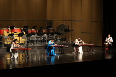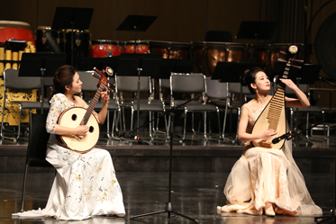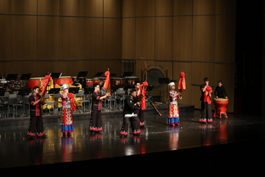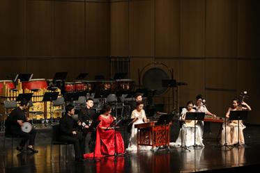 天津音樂學院青年民族管弦樂團這支集中了優秀師生的樂團用精湛的演奏技藝和深刻的音樂表現力為石家莊聽眾獻上了一席饕餮盛宴。音樂會上半場是由我院優秀教師以不同形式演奏的六部作品,包括凡音組合的民族器樂重奏《敦煌》、王紅藝的柳琴獨奏《劍器》、張雅迪、申婷的琵琶與中阮二重奏《七個瞬間隨想曲》、李樂的笛子獨奏《小放牛》、范冉、李依格、李舒婷的古箏三重奏《漢江韻》、陳碩領奏的蘆笙合奏《豐收的喜悅》等。下半場,青年民族管弦樂團演奏了我院院長、作曲家徐昌俊教授創作的《融》《新龍舞》、著名作曲家趙季平創作的《古槐尋根》、中央民族樂團作曲家姜瑩創作的《印象國樂》四部民族管弦樂。音樂會反響熱烈,在觀眾的要求下,青年演奏家李樂、王展展在樂隊的配合下為觀眾加演了一首《長白山歌》。樂團在胡栢端指揮的引領下,以輝煌磅礴的氣勢和嫻熟的技藝,向現場聽眾展示了民族樂器演奏技巧和豐富表現力。師生們飽滿傾情的演奏,迎來了觀眾經久不息的掌聲。