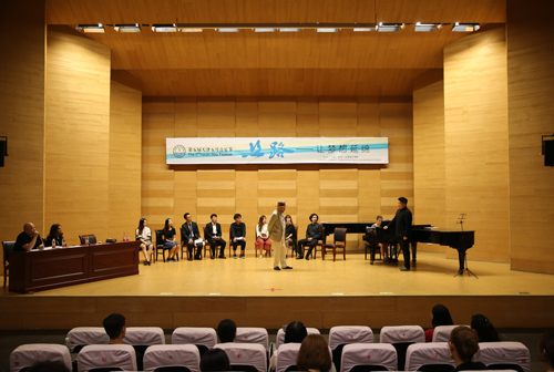 本次大師班授課教授為剛剛舉辦完“普羅旺斯盛夏之夜”聲樂專場音樂會的三位聲樂大師。他們是法國著名男高音歌唱家RAFFALLI Tibère(蒂貝爾·拉法利)、著名青年男低音歌唱家張?zhí)焓妗⑴咭舾璩褻OURTIN Pauline (顧丹·寶蓮娜)。擔任大師班鋼琴藝術指導的是法國著名鋼琴演奏家ANNE GUIDI(安娜·圭迪)。他們不顧旅途勞頓,在25日音樂會結束后,立即為聲樂系的優(yōu)秀學生們授課。