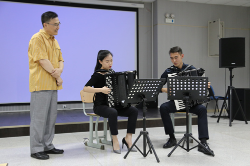 通過張天宇老師兩場講座,在場的觀眾,特別是我系學生深入清晰的了解和伴奏藝術的特點和即興伴奏的技巧,不僅提升了對歌曲伴奏的意識,更拓展了在伴奏方面的能力。學生們紛紛表示,通過兩場講座的學習,深入的認識到了手風琴伴奏藝術原本為手風琴藝術中重要的一環,作為專業學習手風琴的學生,更應重視這一藝術領域的傳承與發展,在將來的學習過程中也將進一步加大對此領域的研習和提高。