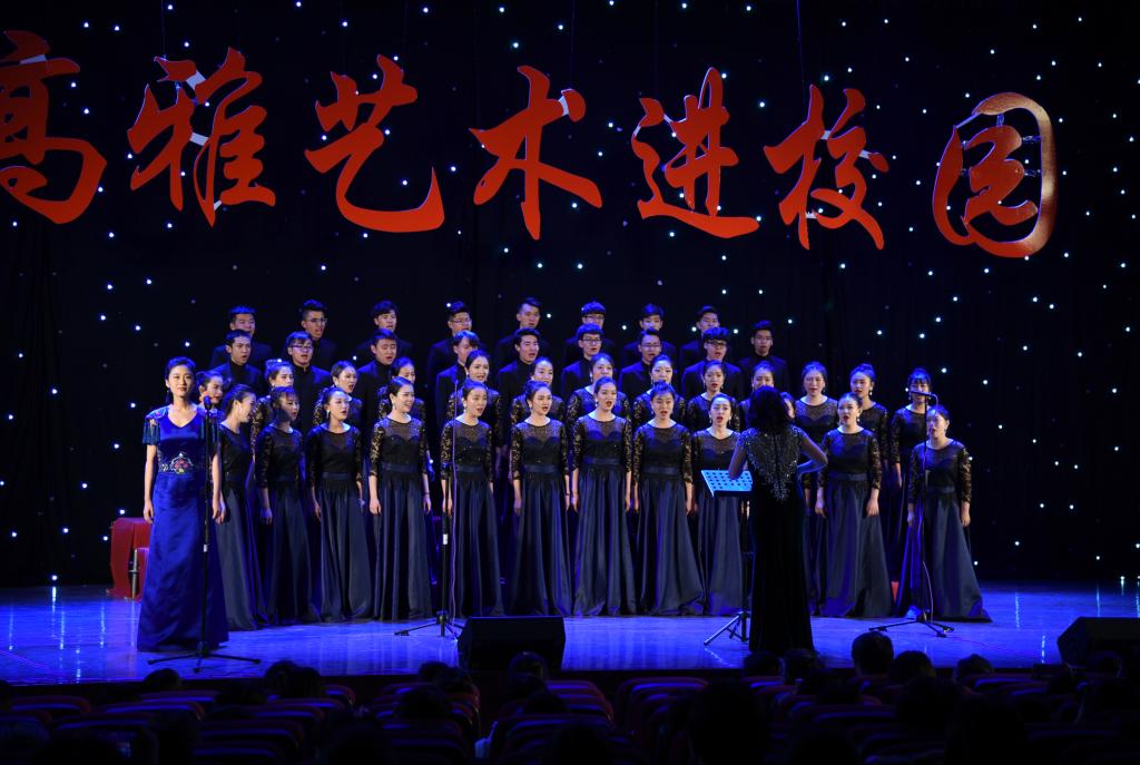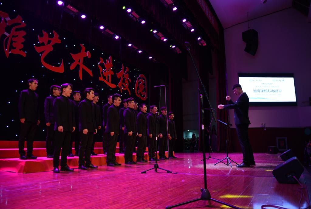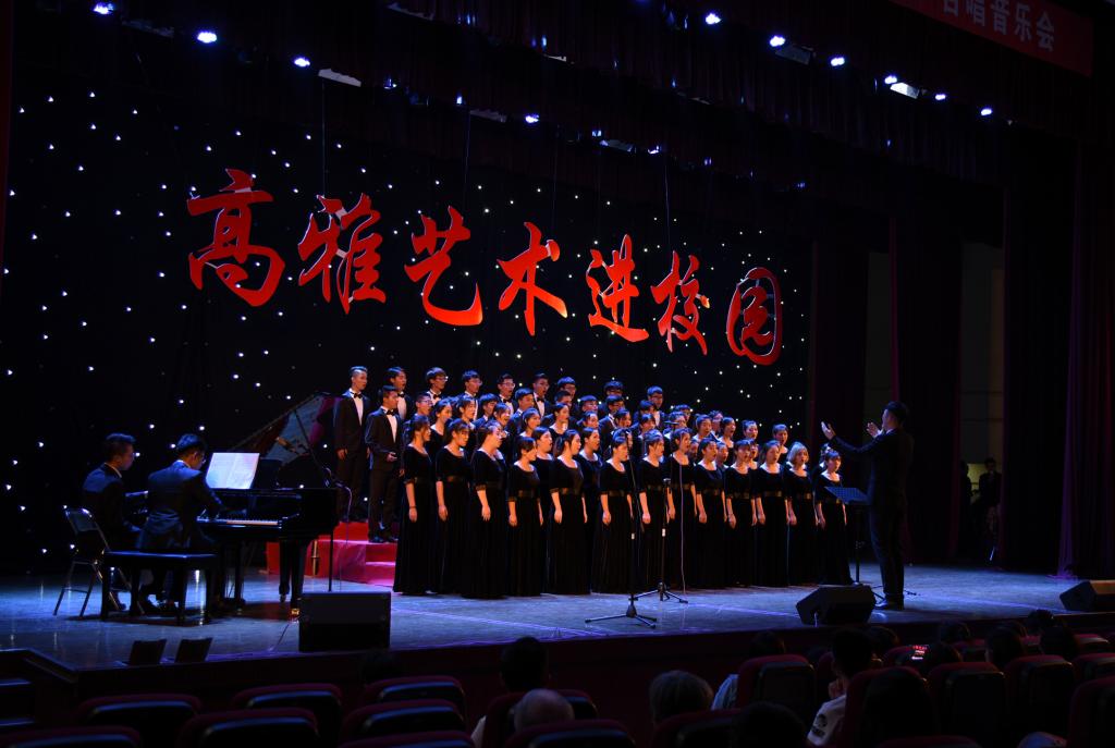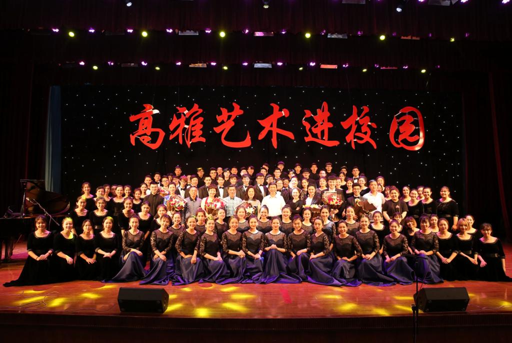本站訊(通訊員 王力石)5月26日,我院“燭光合唱團”走進天津商業大學,在科學會堂舉辦了“高雅藝術進校園——愛樂者,共知音合唱專場音樂會。”我院音樂教育系黨支部書記何繼強,主任辛恩利教授,副主任王欣教授以及天津商業大學各位領導老師,與天津商業大學在校師生一同欣賞了此次音樂會。