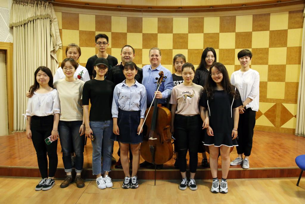 隨后,曼多奇教授為管弦系大提琴專業的8位學生進行了耐心細致的教學輔導。為了能在大師課上有更好的展現,學生們提前認真準備了數首作品,其中包括古典音樂時期著名的貝多芬大提琴奏鳴曲,浪漫主義時期作曲家舒曼的幻想曲、德沃夏克的協奏曲,以及近現代作曲家興德米特、里蓋蒂的無伴奏奏鳴曲等多首佳作。