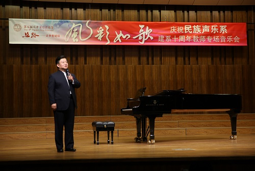 民族聲樂系自2007年建系以來,秉承民族性、科學(xué)性、藝術(shù)性、文化性的教學(xué)理念,積極夯實教學(xué)基礎(chǔ),注重藝術(shù)實踐,努力探索新時期民族聲樂藝術(shù)實踐的新路,并取得了良好的成績。風(fēng)彩如歌——慶祝民族聲樂系建系十周年暨民族聲樂系教師專場音樂會是十年來全系教師對學(xué)院及關(guān)心民族聲樂成長的社會各界的一次展示和匯報。民族聲樂系主任趙振嶺教授為音樂會取名“風(fēng)彩如歌”并親筆題字。其中“風(fēng)”取詩經(jīng)中“風(fēng)雅頌”之“風(fēng)”,意為不同地區(qū)的地方民歌。“彩”取“華彩”之意,代表了我院民族聲樂系和中國民族聲樂一起進步發(fā)展的歷程。“如歌”即“歲月如歌”。十年樹木,恰是新知。百年樹人,不忘初心。