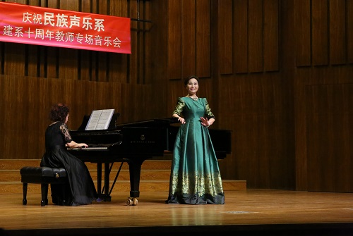 風(fēng)彩如歌——慶祝民族聲樂系建系十周年暨民族聲樂系教師專場音樂會受到了全場觀眾的熱烈歡迎和高度評價,也在全系師生合唱的《我和我的祖國》中圓滿的落下了帷幕。