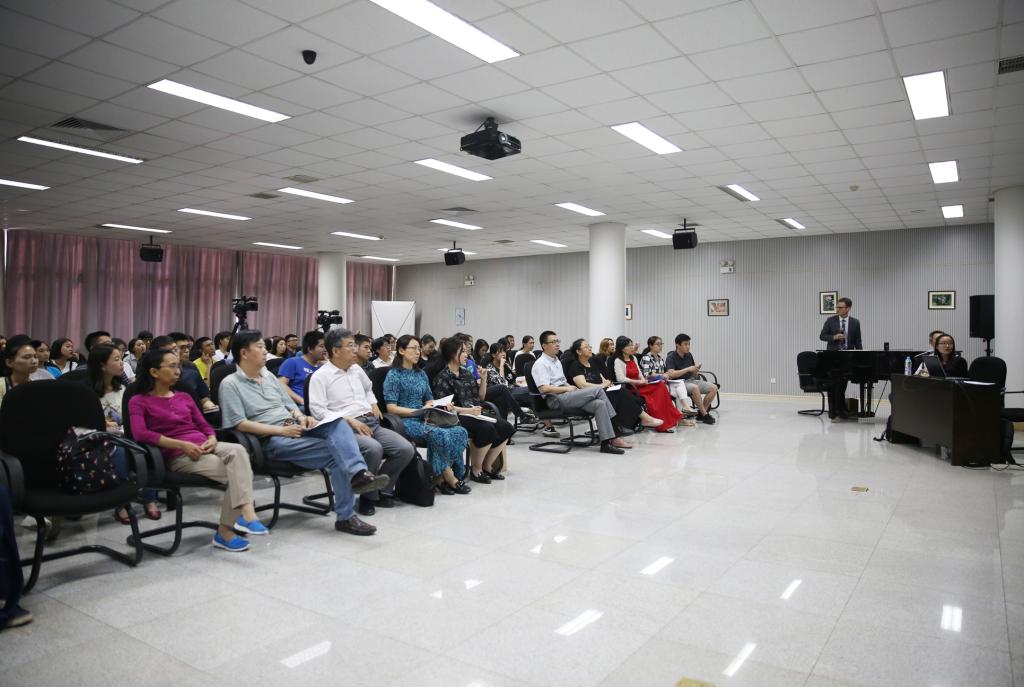 本站訊(通訊員 陳俞村 攝影 李國禎)5月17日下午,美國密蘇里大學作曲、音樂理論教授安德魯格拉內德應音樂學系的邀請,在我院圖書信息樓音像廳為師生們做了題為“美國電影音樂史”的學術講座。音樂學系師生聆聽了本場講座,講座由系主任王建欣教授主持。