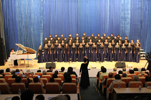 本場音樂會由天津音樂學院音樂教育系燭光合唱團為觀眾們帶來了十二首不同風格的合唱作品,劉巍博士擔綱指揮。其中既有典雅柔美的女聲合唱《微風起處》《圣母護佑》,剛勁十足的男聲合唱《同桌的你》,又有室內混聲合唱《假如你愛我》《正是五月》,混聲合唱《葬花吟》《唯一所求》等。音樂會最后,混聲合唱《鐵砧之歌》《崴薩羅》《新年好》更是將全場氣氛推至高潮,合唱團精彩的演出贏得觀眾經久不息的掌聲。