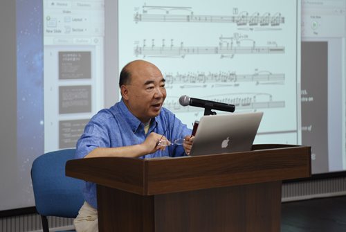 本站訊(通訊員 白雪 史菁 攝影 孫玥)6月15日下午,我院特聘教授周龍在圖書信息樓報告廳舉辦題為《2015年在法國首演的薩克斯管協奏曲和在英國首演的重奏曲》的專題講座。作曲系、管弦系、附中師生參加了此次講座。