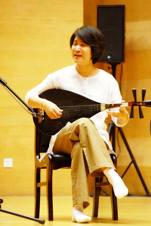 晚上的音樂會是蔡雅藝老師此次來津的重頭戲。舞臺上,雅藝老師閉目、全情,仿佛閉上眼睛的剎那,她的世界也瞬間安靜了下來。她講解的南音雖然仍帶有令人不解的神秘色彩,但觀眾似乎能通過對曲詞的聆聽獲得一些答案。音樂會上,蔡雅藝老師為觀眾們帶來了《八面金錢經》《鵝毛雪》《走馬》《陽關曲》等曲目。受到在場師生們的歡迎。蔡老師對于傳承民族音樂的執(zhí)著精神,也深深地感染了現(xiàn)場的每一位觀眾。音樂會由鮑元愷教授客串主持。