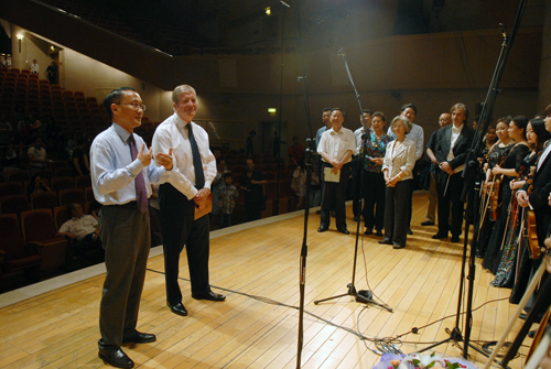 本場音樂會上半場演出的三首中國交響作品分別是作曲家、我院特聘教授周龍的作品《鼓韻》(The Rhyme of Taigu),作曲家、我院特聘教授陳怡的作品《歌墟》(Antiphony)、徐昌俊院長創(chuàng)作的《節(jié)日狂想》(Rhapfest)。《鼓韻》、《歌墟》兩首作品的意境和震撼都通過演奏展現了出來,《節(jié)日狂想》更是以其典型的中國曲風和恢弘的氣勢將音樂會的上半場推向了高潮。