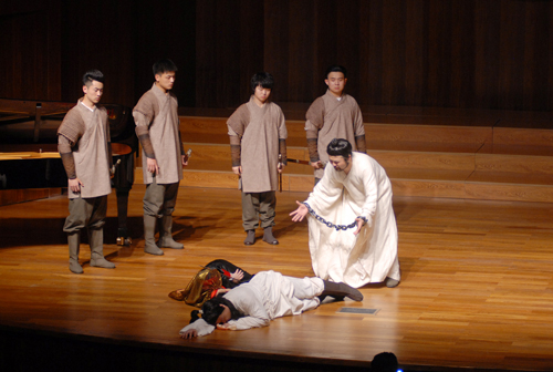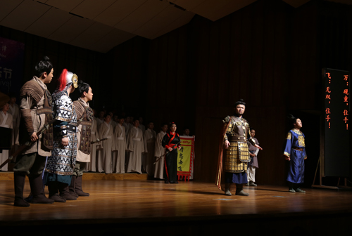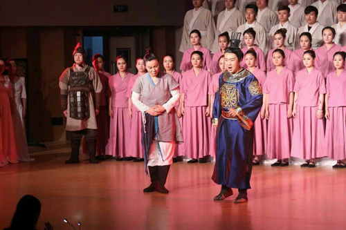 本站訊(通訊員 方海燕 李曉并 攝影 孫玥 姜萌 步丹丹 王旌 高上)5月28日晚7點,備受關注的大型原創歌劇《岳飛》在我院音樂廳拉開了帷幕。正值“2015天津五月音樂節”之際,歌劇《岳飛》的首演無疑是此次音樂節的重頭戲。天津市教委領導、天津音樂學院院領導、各處室領導及全院師生觀看了演出。