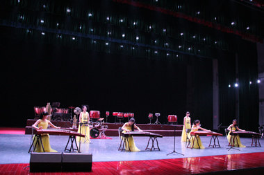 開場(chǎng)的節(jié)目是古箏齊奏《快樂的姑娘》,四架古箏弧形排開,后面兩位打擊樂相合,將清新淡雅的氣質(zhì)描畫出來。集體舞《淮水情·蘭花灣》,場(chǎng)面宏大配合繁復(fù)的走位與高超的技巧,展現(xiàn)出演員扎實(shí)的功底與表現(xiàn)力。四個(gè)小少年帶來的電聲樂隊(duì)《快樂火》,原創(chuàng)的作品,火熱的節(jié)奏,略微青澀的搖滾嘶吼,飽含年輕人的沖勁和激情。而十二位女同學(xué)的二胡齊奏動(dòng)作默契,旋律優(yōu)美,《光明行》振奮精神、《賽馬》奔騰激越。女聲獨(dú)唱《長(zhǎng)鼓敲起來》和《親吻祖國(guó)》歌聲真摯清亮、情緒充盈。附中少年民族樂團(tuán)帶來的民族交響樂合奏連續(xù)演奏了《長(zhǎng)城隨想》、《古槐尋根》和《龍騰虎躍》三首作品。演出結(jié)束,雷鳴般的掌聲長(zhǎng)久不息,領(lǐng)導(dǎo)嘉賓給予了充分的贊譽(yù),專場(chǎng)演出圓滿成功。