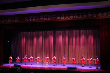 本站訊(通訊員 鄢磊 攝影 孫琬)5月26日晚,天津理工大學(xué)活動(dòng)中心劇場(chǎng),上演了“高雅藝術(shù)進(jìn)校園”——天津音樂學(xué)院附中專場(chǎng)演出。本次演出是2015天津五月音樂節(jié)的重要組成部分,由天津音樂學(xué)院附中主辦,天津理工大學(xué)團(tuán)委承辦,天津理工大學(xué)黨委書記馬建標(biāo)、天津音樂學(xué)院黨委書記索玉華,天津理工大學(xué)黨委副書記史慶偉、副校長(zhǎng)安玉健,天津音樂學(xué)院附中黨總支書記劉繼軍、副書記曹玲,副校長(zhǎng)孟輝出席了晚會(huì)。