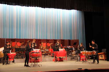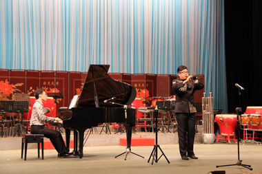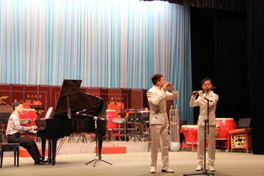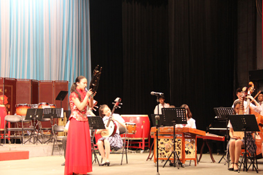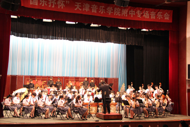 本次的出訪是應中國戲曲學院附中邀請,也是2013年五月音樂節國戲附中來我校交流后的回訪。晚上7點,兩校互贈禮物儀式和領導簡短發言后,演出正式開始。上半場是獨奏、齊奏的小節目,順序上演打擊樂合奏《鼓詩》、古箏獨奏《臨安遺恨》、嗩吶獨奏《鄉音》、竹笛二重奏《牧場歡歌》、二胡獨奏《地球》、笙獨奏《阿細歡歌》六個節目,展示了附中各專業學生的實力水平。下半場是民族交響樂合奏,附中少年民族樂團的學生們演繹了《龍騰虎躍》、《長城隨想》、《古槐尋根》、《青春之舞》四首作品,體現了專業的水準和默契的合作意識。音樂會獲得了到場師生的一致好評。