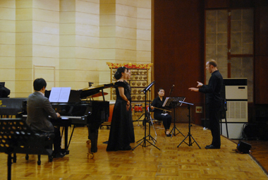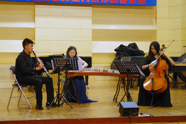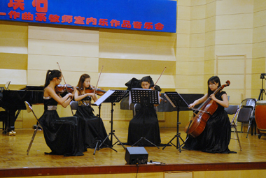 下半場(chǎng)的第一個(gè)作品是盧長(zhǎng)劍老師創(chuàng)作的聲樂(lè)作品《天地--逆旅》,伴奏由二胡與鋼琴組成,其唱詞運(yùn)用了唐朝詩(shī)人李白的詩(shī)作《擬古十二首(其九)》。李樹(shù)平老師的作品《暮笛》,為長(zhǎng)笛與鋼琴而作,意在用浪漫手法創(chuàng)作,單音與多音的互動(dòng)來(lái)展現(xiàn)作者對(duì)音樂(lè)教育前輩們那種“青絲化作愛(ài),夕陽(yáng)無(wú)限美”的崇高敬仰。刑曉林老師為女高音而作的獨(dú)唱作品《我的思念在南方》,選自作者的聲樂(lè)套曲《南方印象》,具備鮮明的民族風(fēng)格。最后,是來(lái)自張大鵬老師的弦樂(lè)四重奏《春寒--紀(jì)念世界反法西斯戰(zhàn)爭(zhēng)勝利七十周年》,通過(guò)這部作品反映出戰(zhàn)爭(zhēng)的瘡痍對(duì)作曲家的影響,以及對(duì)生命意義的感悟。