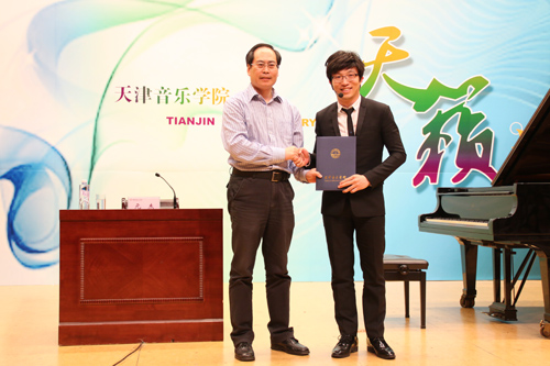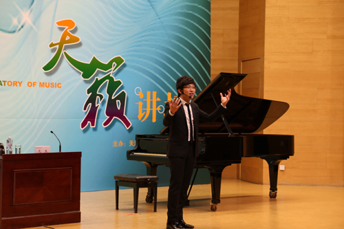 本站訊(通訊員 朱誠 攝影 吳昊玥 沃玲儀)5月20日,2015天津五月音樂節首場學術講座——天津音樂學院第二十七期天籟講壇在圖書信息樓報告廳舉行。講壇邀請到旅美青年鋼琴家元杰擔任主講嘉賓。講壇由學工部部長、院團委書記劉濤主持。