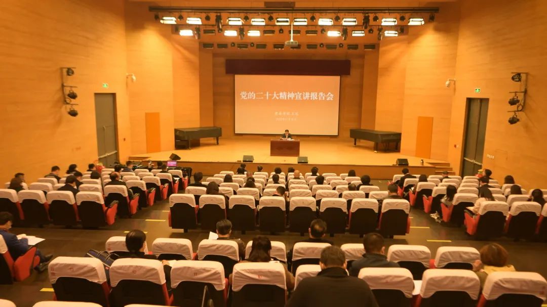 本站訊(編輯 李彤 攝影 李棟 責任編輯 趙霞)11月18日,黨委書記王歡為學校黨員干部宣講黨的二十大精神。學校領導班子成員、中層干部等一同參加了宣講會。