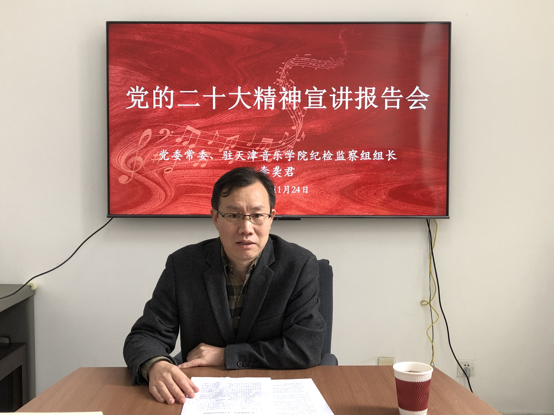 本站訊(編輯 馬卿 責任編輯 段建新)11月24日,黨委常委、駐天津音樂學院紀檢監察組組長李?君通過線上線下相結合的方式為駐天津音樂學院紀檢監察組、民族聲樂系、現代音樂系全體師生作黨的二十大精神專題宣講暨專題黨課。