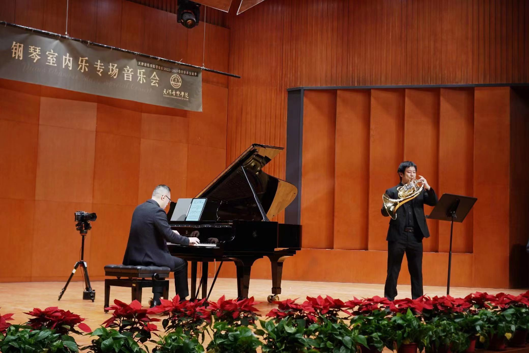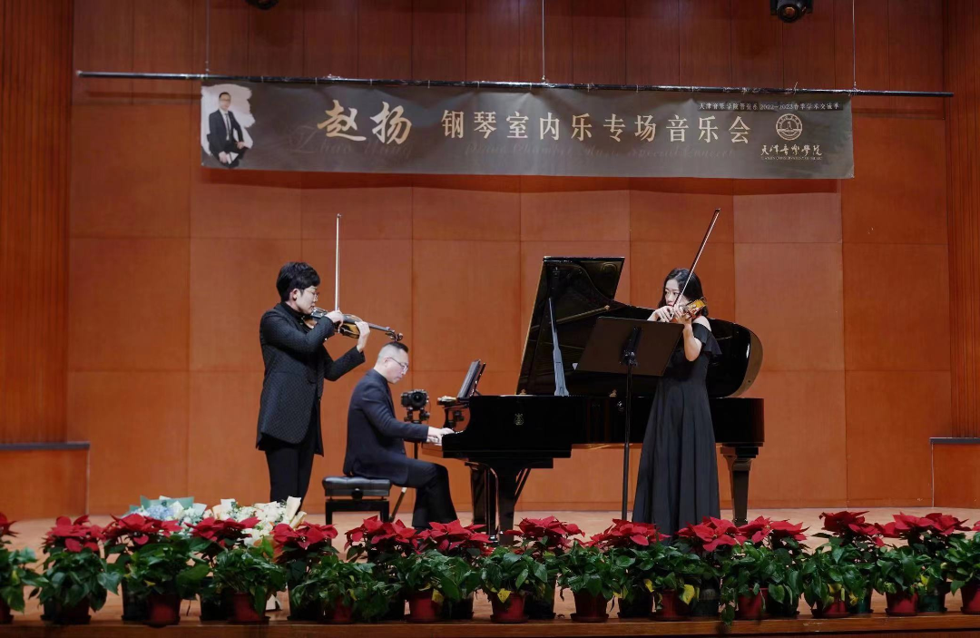 本站訊(編輯 郭偉強 責任編輯 王健英)3月23日,管弦系2022-2023春季學術交流季——趙揚鋼琴室內樂專場音樂會在北校區演奏廳成功舉辦。管弦系鋼琴藝術指導副教授趙揚老師與特邀嘉賓中提琴教師甘雨、圓號教師黃濤以及小提琴副教授唐甜甜共同為大家帶來了一場聽覺盛宴。