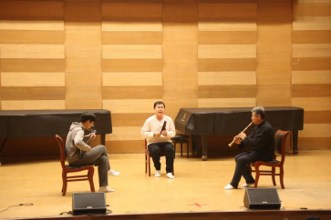 其次登場的是福建南音匯報組。指導教師夏侯玲玲簡要介紹了南音落戶我院的機緣,福建南音是流傳于福建地區的古老樂種,是我國寶貴的音樂文化遺產,我院是福建省外唯一一所堅持南音傳播的專業院校,近年來成功舉辦了多次匯報演出。本場演出既有以樂器合奏為主的《清風頌》《點水流香》,也有頗具閩南語言特色的念唱《六綿答》《有緣千里》,王建欣教授加入演奏的《風打梨》更是贏得掌聲連連。同學們的細膩的表演展現了我院濃厚的南音學習氛圍,真正做到了“南音北傳”。