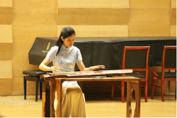 首先由古琴匯報組的同學帶來精彩演出,指導教師邱桐簡要概述了古琴的形制、音色等相關知識。古琴藝術凝結了中華傳統文化的精華,是我國最早也是唯一入選聯合國教科文組織非物質文化遺產目錄的樂器品種,具有豐富的文化內涵和高雅的審美意趣。本場匯演共演奏了三首琴曲,古琴合奏《滄海一聲笑》磅礴大氣,體現了傳統藝術與現代音樂的完美融合;《子夜吳歌》韻味深遠,再現了“秋風吹不盡,總是玉關情”的婉轉;獨奏曲《古琴吟》中和淳靜,如幽幽蕙蘭之清雅高潔。古琴組同學們的精彩演奏,讓美妙靈動的琴聲從指間流出,似絲絲細雨流淌心間。