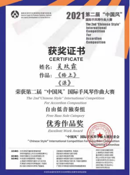 本站訊(編輯 蘭靜 責(zé)任編輯 劉文平)日前,第二屆“中國風(fēng)”國際手風(fēng)琴作曲大賽成績揭曉。我院作曲系青年教師剛妍的作品《戈壁·海》獲得自由低音獨(dú)奏組第一名,2019級(jí)本科生吳玫霖的作品《路上》《源》獲得自由低音獨(dú)奏組優(yōu)秀獎(jiǎng),其中作品《源》位列第四名,指導(dǎo)教師為任丹丹。