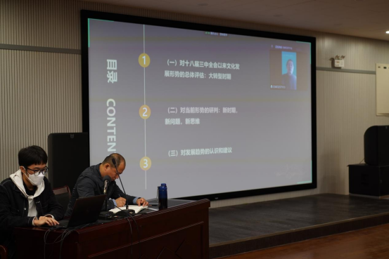 下午,學術講座正式開始。藝術管理系領導、教研室主任、全體專業教師以及學生共150余人在圖書信息樓音像廳通過網絡視頻認真聆聽了講座。張曉明講到,十八屆三中全會以來,文化產業已逐漸進入大轉型時期。在這一時期,文化產業規模性擴張階段結束;文化產業的內外結構發生變化,數字文化產業對我國文化產業增加值的貢獻持續上升;文化產業開始從消費性服務功能向生產性和社會性服務功能延伸;“放管服”推動政府職能進一步轉變和體制機制政策的再創新,以促進“文化產業回歸文化市場”。面對新形勢,張曉明建議,一是以5G商用為契機,實施國家文化遺產數字化戰略,下大力量建設新一代文化基礎設施;二是內需擴大政策助推文化消費潛力釋放,建議系統出臺刺激文化消費潛力的政策,形成新型消費文化環境;三是抓住數字文化發展高峰期帶來的契機,以“原始創新”的精神推動文化領域國家治理體系和治理能力現代化建設;四是整合文化和相關產業政策,形成“文化-科技-金融”三元政策體系。