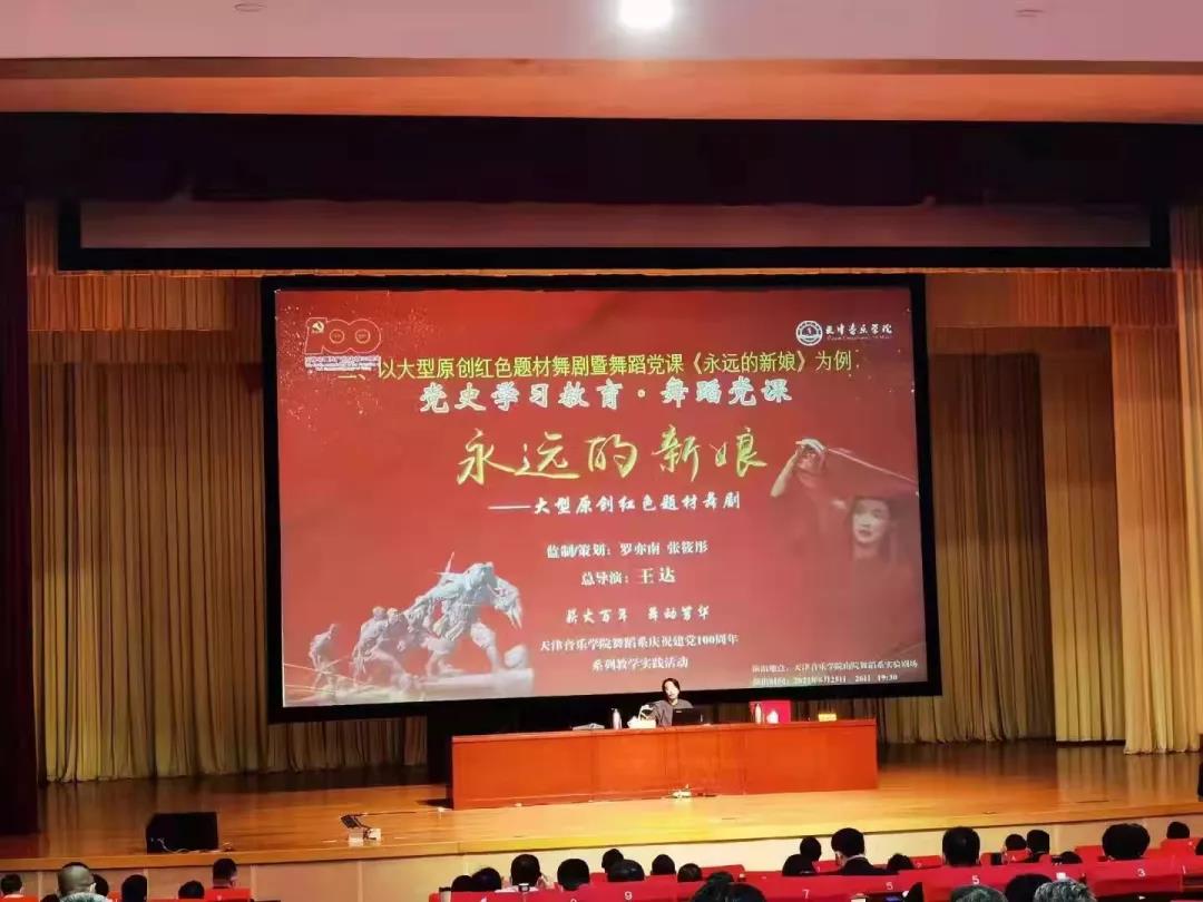 專題講座是舞蹈系原創(chuàng)大型紅色題材舞劇暨舞蹈黨課《永遠的新娘》赴市委黨校演出前的預熱,也是舞蹈系直屬黨支部開展黨史學習教育學史增信、學史力行的生動實踐。王達從中國傳統(tǒng)古典舞的發(fā)展起源談起,系統(tǒng)梳理了中國民族民間舞蹈的風格特征,以慶祝中國共產(chǎn)黨成立100周年為主線,向廣大黨校學員介紹了中國紅色舞蹈的歷史脈絡和鑒賞方式。與此同時,分享了我院大型紅色題材舞劇暨黨史學習教育專題活動——舞蹈黨課《永遠的新娘》的創(chuàng)作體會,深入闡釋了第一批納入中國共產(chǎn)黨人精神譜系的偉大精神之一的沂蒙精神,以及其在理論學習與藝術(shù)創(chuàng)作中的實踐關(guān)系。