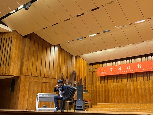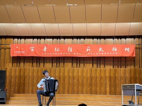 本站訊(編輯 孔繁麗 史灑 李堃 攝影 郭穎 任宗宣 責任編輯 孫青)6月25日下午,“百年征程薪火相傳”手風琴鍵盤系慶祝中國共產黨成立100周年專場音樂會在北院音樂廳成功舉辦。本場音樂會手風琴鍵盤系師生以重新演繹紅色經典音樂作品的方式奏響建黨百年的宏偉樂章,用極富感染力的藝術表達方式重溫黨的百年征程,抒發對黨的熱愛之情。