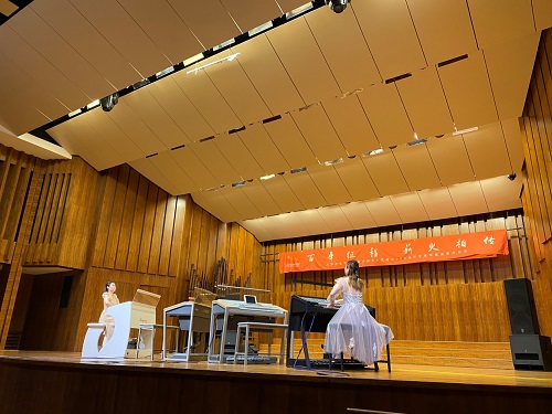 本場音樂會由手風琴鍵盤系輔導員史灑主持,在徐翰邱(本科四年級)、崔曉玥(本科三年級)演奏的電子管風琴二重奏《紅旗頌》中拉開帷幕。《紅旗頌》以紅旗為主題,用宏偉莊嚴的旋律,表現了中國人民在紅旗的指引下,英勇頑強、奮發向上的革命氣概,熱烈謳歌了偉大祖國蒸蒸日上的繁榮景象。黃星玥(本科二年級)、王求萌(本科一年級)演奏的電子管風琴二重奏《常青就義》(《紅色娘子軍》選段),描繪了黨代表洪常青英勇就義的場景,贊頌了無數革命先烈視死如歸、不畏犧牲的英雄氣概。王梓沐(本科一年級)演奏的手風琴獨奏原創作品《美麗草原我的家》,以蒙古族民間音樂的獨特風格,表達了對家鄉的無限熱愛,贊頌了在中國共產黨的領導下,人民的生活更加富裕、美好的歡欣喜悅之情。趙思佳(本科三年級)演奏的中國作品手風琴獨奏《在希望的田野上》,表達了在黨的領導下,人們過上美好幸福生活的歡欣、對祖國大地迸發出巨大活力的喜悅以及對新時代的向往與謳歌。高楚琪(本科三年級)和趙悠揚(本科三年級)帶來的手風琴二重奏《火車向著韶山跑》描繪了全國人民涌向韶山的盛況,《烏魯木齊的天空》描述了改革開放以來的滄桑巨變。李堃(本科二年級)演奏的原創作品《長城》,描繪了中國萬里長城雄偉壯麗的景象,贊頌了“萬里長城永不倒”的中國精神。手風琴專業教師劉睿演奏的手風琴獨奏《時光暢想曲》,以時光見證的角度帶領大家感受偉大祖國和中國民族百年奮斗的波瀾歷程,訴說時間的流逝與珍貴。