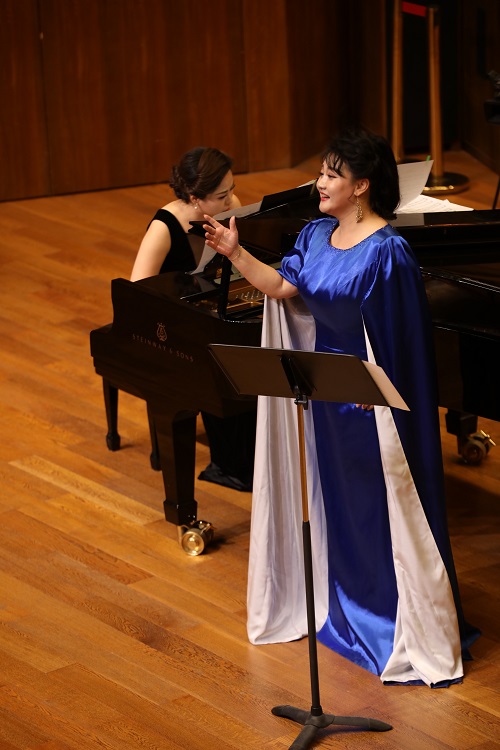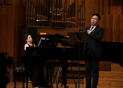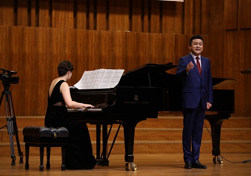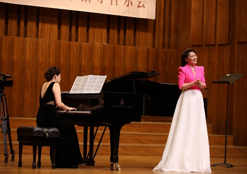 本場音樂會的演唱嘉賓有中國音樂學院聲歌系教授、男中音歌唱家馬金泉、天津音樂學院民族聲樂系李清資副教授、聲樂系于萍麗副教授、曹穎副教授、苑璐副教授和附中青年教師趙登輝等。音樂會呈現了中外不同風格題材的二十多部作品,音樂會的開場由廖天宇演唱了《父親的草原母親的河》《絨花》等表現對于祖國熱愛之情的中國作品;旅意男中音歌唱家、附中青年教師趙登輝演唱了頗具藝術張力與難度的西班牙歌劇詠嘆調《愛情,我生命的生命》以及選自威爾第歌劇《唐卡洛》的《我的末日就在眼前》;我院旅意抒情女高音歌唱家曹穎演唱了優美動人的舒伯特藝術歌曲《夜與夢》、選自歌劇《魔笛》的詠嘆調《我感到》和中國作品《敕勒歌》;我院旅意男高音歌唱家苑璐演唱了拉赫馬尼諾夫藝術歌曲和中國現代藝術歌曲《暗香》,以及被譽為“鋼琴藝術指導的試金石”的作品《春潮》;民族聲樂系男高音歌唱家李清資動情地演唱了《懷念曲》和選自歌劇《長征》的《我的愛人你可聽見》;我院旅意女高音歌唱家、中央音樂學院在讀博士于萍麗深情演繹了中國藝術歌曲《釵頭鳳》《海戀》和法國藝術歌曲《憂郁之歌》;中國音樂學院馬金泉教授演唱了選自歌劇《白毛女》的《楊白勞》,以及《軍民大生產》《鳳陽花鼓》等中國歌曲。