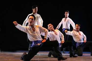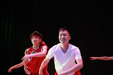 本次梁岳鵬老師個人作品專場演出共由10余部作品組成,既是對舞蹈專業教學工作的階段性總結,也是黨員專業教師運用舞蹈藝術語言在建黨100周年之際的誠摯獻禮。演出由一組爐火純青的舞蹈技巧展示拉開帷幕,舞蹈系2020級男生身穿紅色上衣展示著他們輕盈而矯健的身姿,一個個絞腿蹦子、冒小翻、毽子拉拉提干凈利落,展現出青年學生的無限活力,瞬間點燃全場。由權介瑜表演的《信念》以流暢并富有張力的舞蹈語言塑造了深陷囹圄、備受酷刑卻仍寧死不屈的革命人物形象。作品集錦部分包含了藏、蒙、瑤三個民族的舞蹈作品,肆意灑脫的中國民族民間舞不僅展現了中華文化的多元特征,也將中國人民自信自強、勤勞勇敢的品格淋漓盡致地展現了出來。晚會在經典舞蹈作品男子藏族群舞《翻身農奴把歌唱》中進入尾聲,作品由“束縛”“解放”和“釋放”三段式情感結構組成,真切地表達了在中國共產黨領導下翻身做主人的真情實感。