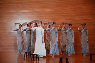 舞蹈《愛蓮說》承載的詩情畫意和高尚的思想品格,《我等你》中軍嫂細膩而堅定的情感、《紅色童年》中方志敏的愛國情懷,《云端上的日出》《我欲乘風歸去》中傳達的對信仰的追求都讓觀眾真切地體會到了頑強的精神力量。舞蹈《傾城》《唐印》《漁光曲》為師生展現了不同特點的中國女性角色,有北方佳人的遺世獨立,有唐三彩仕女的靈動嫵媚,更有上海弄堂女性獨特神秘的東方之美。清新優雅的《碇步橋水清悠悠》,碇步橋象征著家鄉過去的美好,碇步橋上的回響,是路過歲月后抹不去的鄉愁。舞蹈《士兵與槍》中以“士兵”與“槍”兩個最具象征意義的形象,在激情豪邁的音樂旋律中極具力度感,向觀眾傳達出一種軍人的昂揚之勢與魄力,傳遞著張力十足的動感與雄渾之美。整個舞蹈表現了手握鋼槍的士兵肩負著國之重任,面對挑戰和困難,頑強不屈、團結一致的協作精神,充分展現了中國人民解放軍的青春風采與精神風貌。