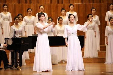 音樂會以女生合唱河北民歌《鬧元宵》開場。由梁美惠、葉駿逸同學分別演唱了河北民歌《放風箏》和《虹彩妹妹》。女高音重唱天津民歌《畫扇面》將我們帶回了那個街頭巷尾人人哼唱的老天津衛(wèi)。之后由楊昊龍、劉迎宵、苗宸瑞、項君君同學演唱了河北民歌《小白菜》、天津民歌《媽媽娘你好糊涂》、張北民歌《走西口》,同學們各具特色的聲腔與語調,把民歌中飽含的感情表現(xiàn)得淋漓盡致。同學們以男生合唱和女生合唱的形式,分別演繹了河北民歌《小放牛》、張家口民歌《散花》、晉縣民歌《反對花》、冀東民歌《撿棉花》和《小看戲》。同學們清澈明亮的歌聲,為我們展現(xiàn)了河北各地域民歌獨具特色的方言、唱腔和語調,讓觀眾們清晰地感受到了津冀民歌的風格特點。音樂會的最后,全體學生演唱了天津民歌《蓮花落》和河北民歌《十朵花》。