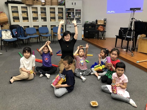 工作坊中,陳怡然邀請(qǐng)了七位小朋友參與,根據(jù)他們自備的生活物品,由音樂教育系本科生和研究生現(xiàn)場(chǎng)帶領(lǐng)大家共同制作了體鳴類樂器及弦鳴類樂器,并以合奏的形式實(shí)踐了兒歌編配?;顒?dòng)不僅讓孩子們感受到了樂器制作的樂趣,同時(shí)也讓同學(xué)們將奧爾夫理念運(yùn)用于實(shí)踐中。