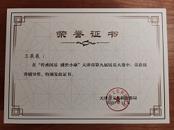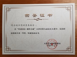 本站訊(編輯 王展展 攝影 王展展 責任編輯 陳智杰)日前,由民樂系嗩吶教師王展展指導的“嗩古吶今”嗩吶重奏組合,在剛剛結束的由天津市文化和旅游局舉辦的 “傳承國樂,盛世小康”天津市第九屆民樂大賽中,榮獲職業組組合類一等獎(第一名)。指導教師王展展榮獲優秀輔導獎。