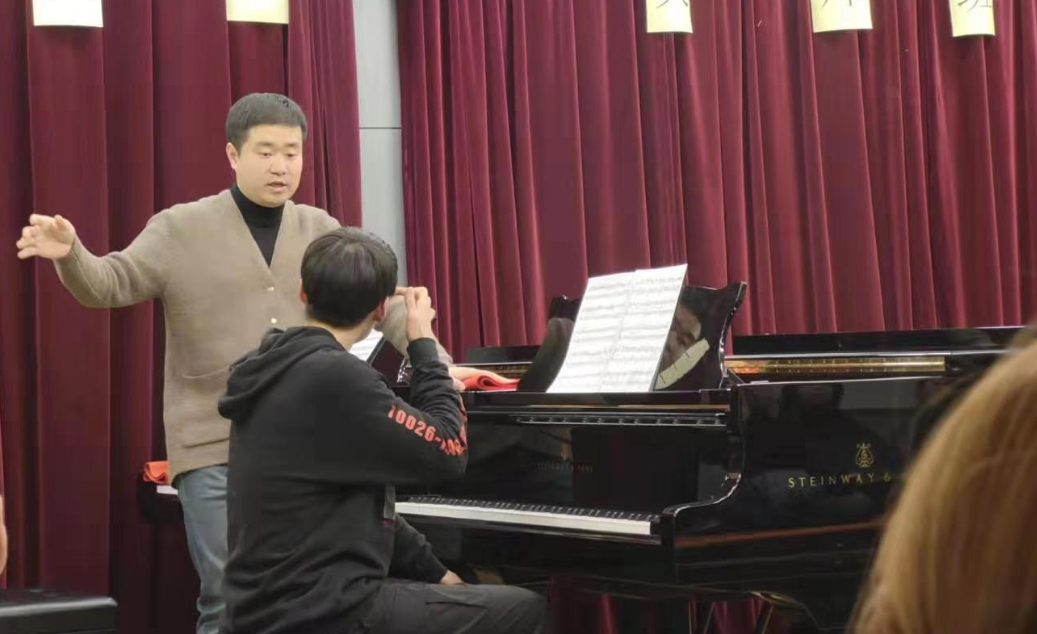 王笑寒教授2010年畢業于德國漢諾威音樂學院,師從于阿里?瓦迪與馬蒂?雷卡利奧教授。曾在包括德國慕尼黑ARD國際音樂比賽、美國范·克萊本國際鋼琴比賽、德國波恩貝多芬國際鋼琴比賽等眾多鋼琴大賽中獲獎。在本次大師班中,他先后為學生講解了肖邦、貝多芬、普羅科菲耶夫等作曲家的作品,王教授為同學們梳理了古典主義時期、浪漫主義時期音樂創作發展的走向以及不同時期音樂風格的變化。