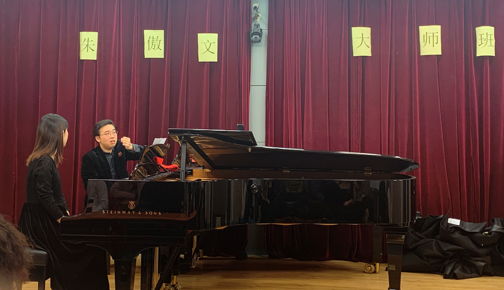 朱傲文從4歲開始學習鋼琴和小提琴。他已獲得茱莉亞音樂學院音樂學士及碩士學位,并取得C·V·斯塔爾基金會博士獎學金,現于紐約攻讀鋼琴演奏音樂藝術博士學位,師從卡普林斯基博士和朱利安·馬丁教授。大師班中,他先后為學生講解了貝多芬、肖邦、拉威爾等作曲家的作品,朱傲文先生用精準的演奏、生動的講解為同學們講述了鋼琴演奏的風格與技巧的關系,同時也對古典主義時期、浪漫主義時期音樂創作闡述了自己的觀點。
