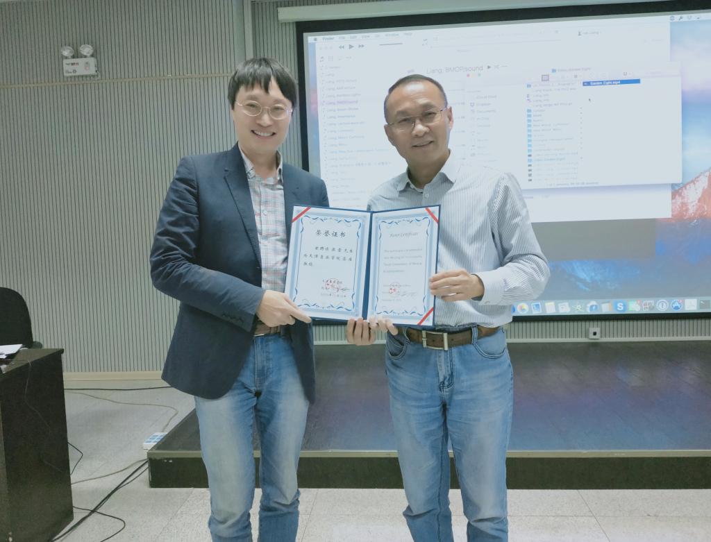 講座開始,院長徐昌俊為梁雷教授頒發了客座教授證書。此次講座分為兩個部分:第一部分圍繞“聲,影,歌,”對其音樂創作不同階段進行分析、講解;第二部分以他所在的美國加州大學圣地亞哥分校的“現代作曲教學理念”為題作較為詳細的介紹。在講座中梁雷教授主要介紹了他哈佛大學及其所在學校音樂系的教學理念、教育思想等有關方面,重點介紹人才的發掘和培養。通過講座,在座師生對梁雷的音樂創作觀念、美國音樂教育及作曲教學等有了更深一步的了解。