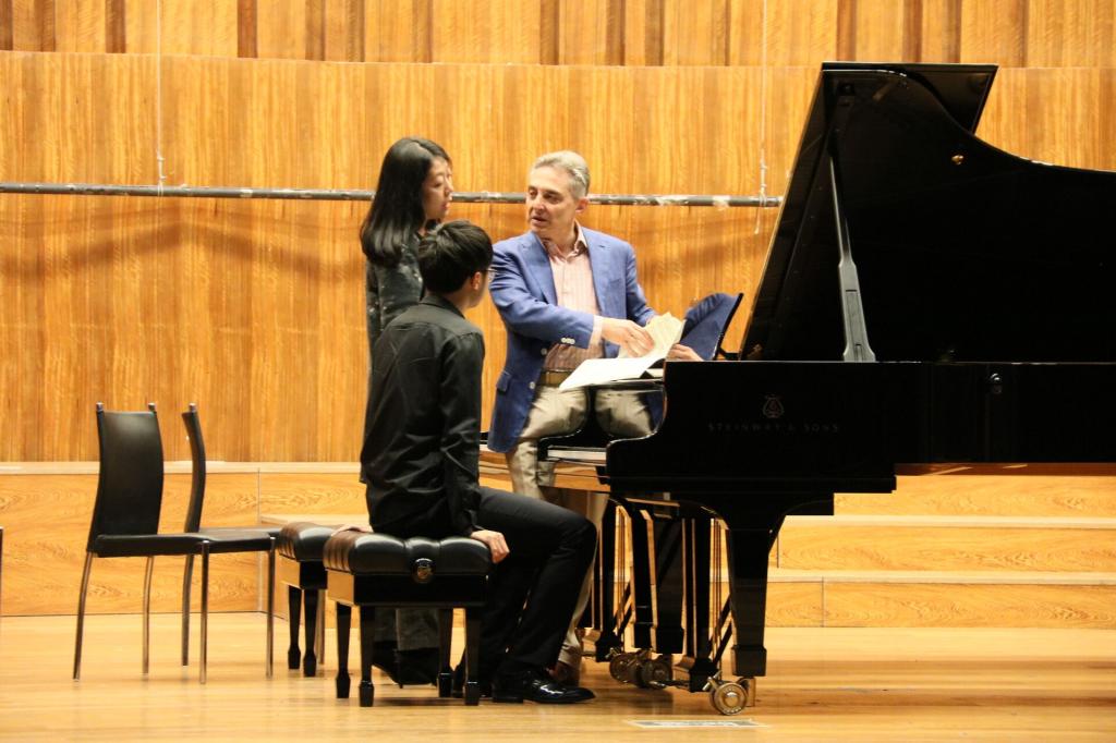 本站訊(編輯 劉崢 責任編輯 孫青 攝影 王浩哲 張舒昂)11月5日至7日,我院客座教授、法國鋼琴家戴柏圖教授大師班、音樂會分別在北院音樂廳和天津音樂廳舉行。院長徐昌俊、相關部門負責人以及鋼琴系全體師生共同觀摩了音樂會。鋼琴系教師、本科生、研究生和附中部分優秀學生參加了大師班。