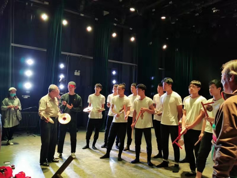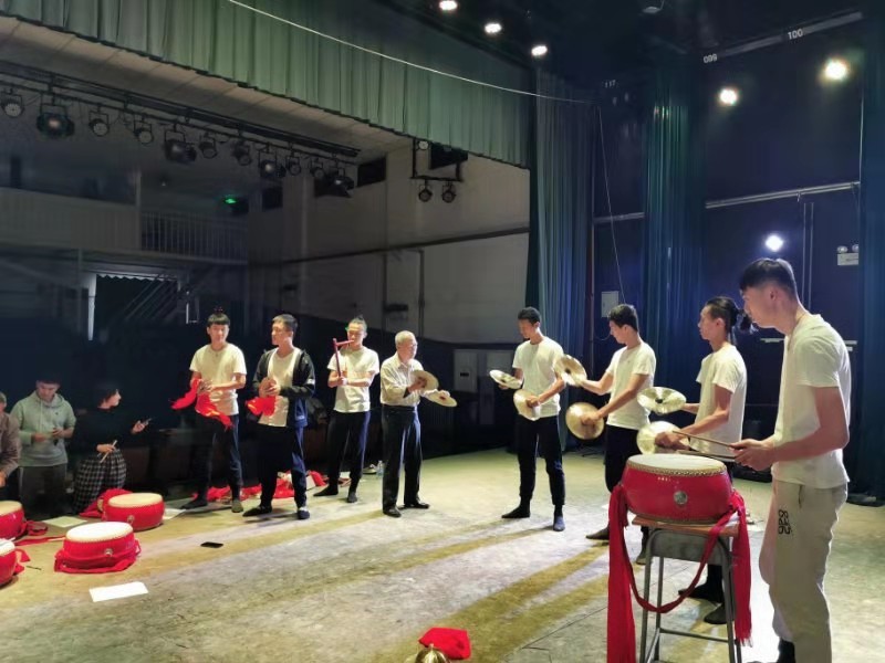 活動中,老藝人們向舞蹈系師生講述了老會的由來,展示了老會的技藝,并教授了學(xué)生演奏方法。讓學(xué)生真正的走進(jìn)“法鼓”,了解“法鼓”,體驗“法鼓”。長時間的教學(xué)使得老藝人們都已大汗淋漓,但他們并未表現(xiàn)出一絲松懈。他們對藝術(shù)的尊重,感染著在座的每一位師生,充分調(diào)動了課堂的學(xué)習(xí)氛圍,激發(fā)了學(xué)生的學(xué)習(xí)興趣,使學(xué)生們積極熱情地參與其中。課后,老藝人們對學(xué)生的學(xué)習(xí)成果給予了高度贊揚(yáng)。