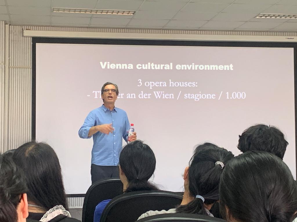 9月30日上午,克里斯托弗·維道爾為藝術管理系師生帶來一場關于“如何利用數字化平臺進行觀眾拓展”的學術講座。講座由藝術管理系許多老師擔任英文翻譯。克里斯托弗·維道爾以維也納國家歌劇院為例,為大家介紹了維也納國家歌劇院先進的數字化設施,并以詳實的數據向大家展現維也納國家歌劇院如何巧用數字化平臺成功進行觀眾拓展,啟迪大家關注新技術,巧用大數據平臺。講座最后,維道爾先生與廣大師生進行了廣泛的溝通與討論,為藝術管理系學生的職業發展提供了新思路和新方向。
