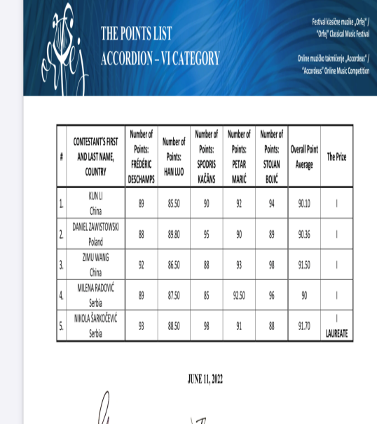 塞爾維亞國際手風琴比賽向世界各地的所有學生和藝術家開放,今年的Accordeus線上音樂大賽由來自13個國家的31名評審團成員組成。吸引了包括中國、塞爾維亞、克羅地亞、意大利、斯洛伐克、塞爾維亞、捷克、波黑等諸多國家的選手參加本次比賽。